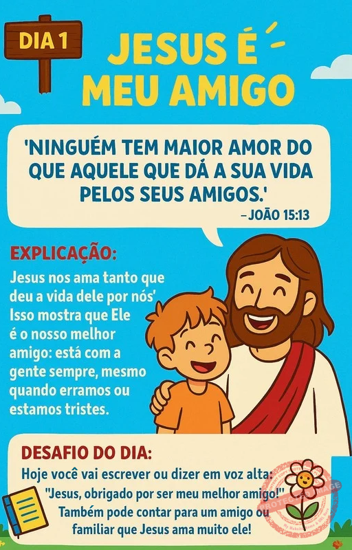 Um devocional infantil em PDF que ajuda a criar uma rotina diária com Deus, fortalecendo o hábito da oração, da gratidão e do relacionamento com Jesus por meio de mensagens curtas e acessíveis.